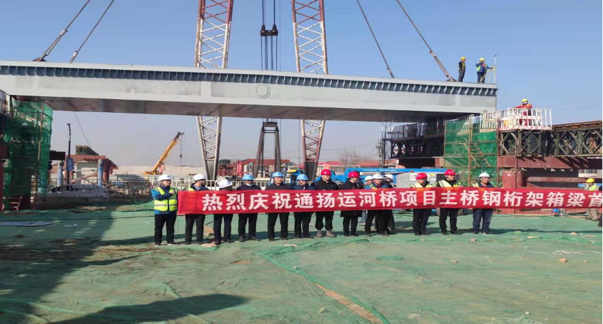 跨通揚運河橋鋼桁架梁首件吊裝成功